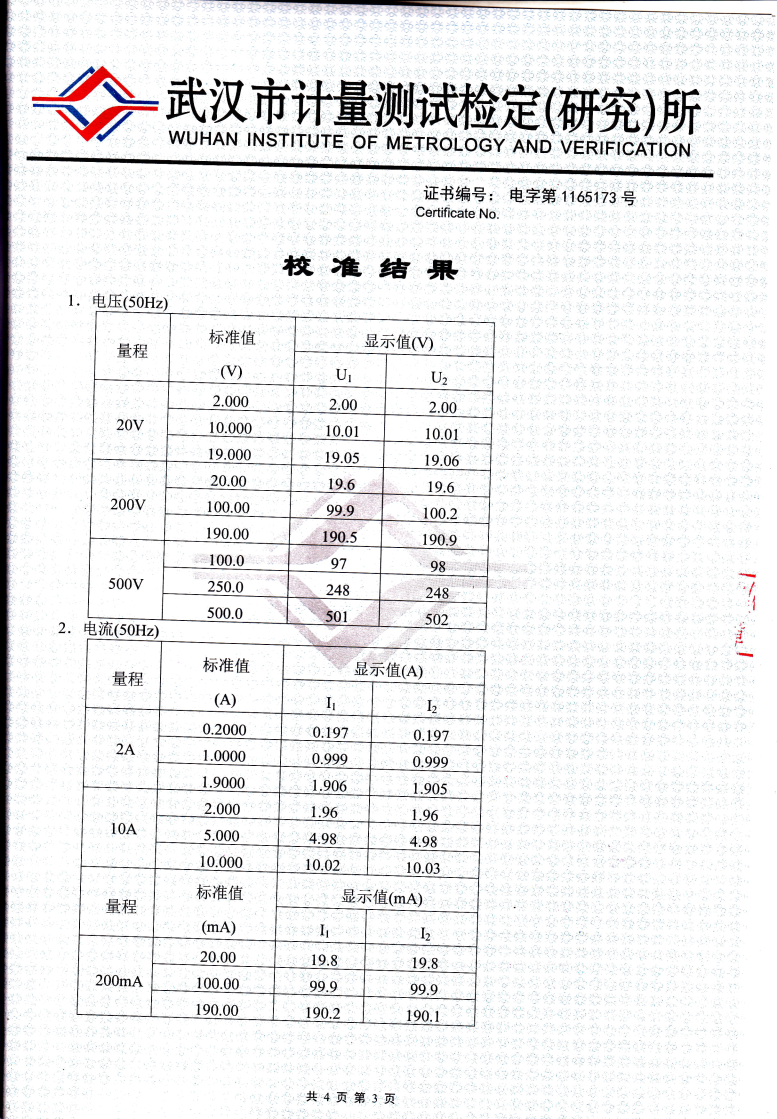 注:相位測量在1.5mA-10mA,5V-10V時,相位誤差為±3°。 額定工作條件下,各被測量的額定工作誤差極限不超過相應(yīng)基本誤差極限的兩倍。