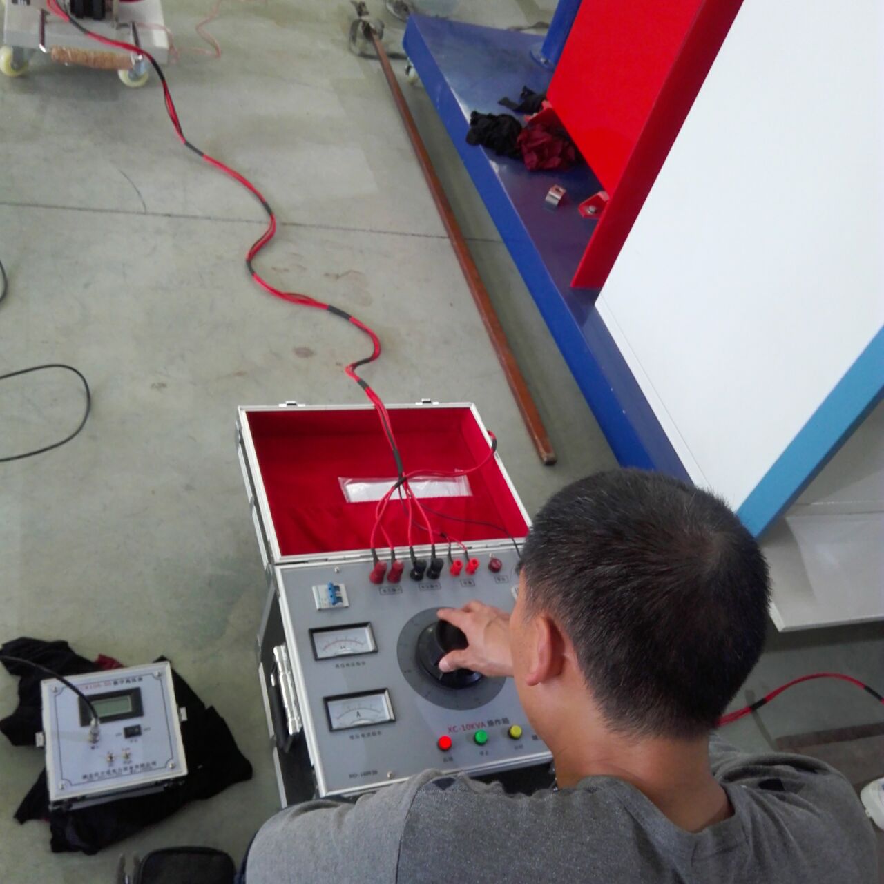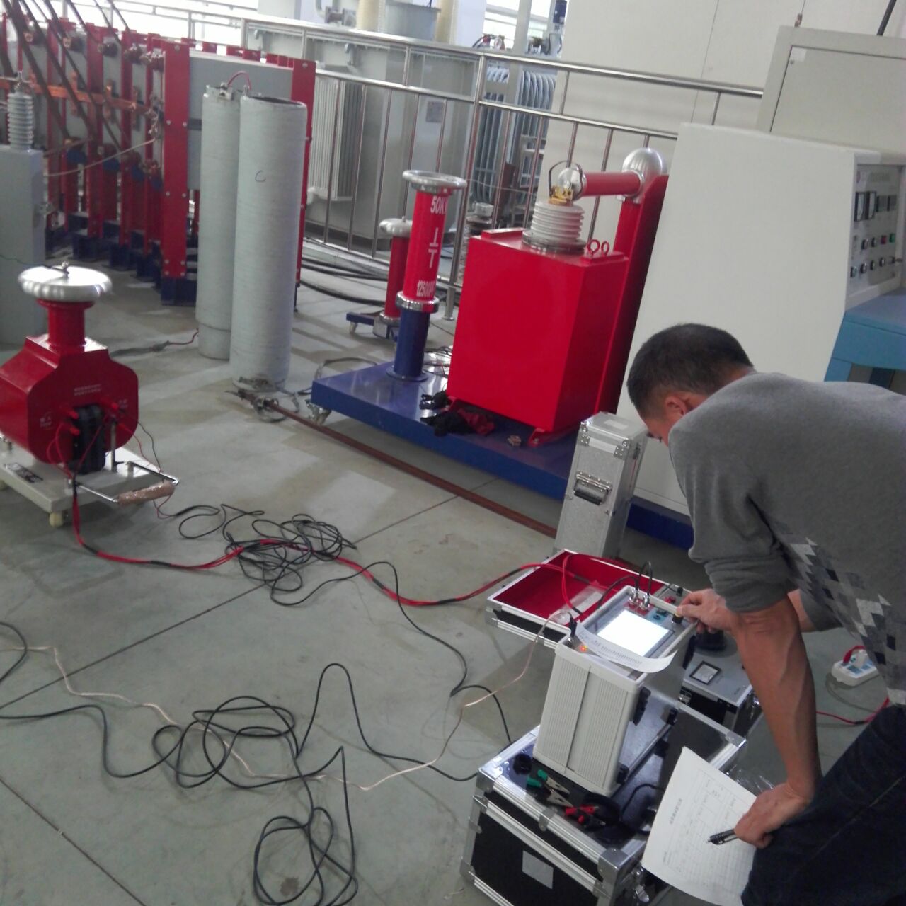 李工首先對設(shè)備的原理和功能進(jìn)行了全面而細(xì)致的講解。特別是我公司生產(chǎn)的干式試驗(yàn)變壓器,利用先進(jìn)的生產(chǎn)設(shè)備,采用線圈繞組環(huán)氧真空澆注及CD型鐵芯的新工藝,和同類產(chǎn)品油浸式變壓器相比,明顯地降低重量,減少體積,在質(zhì)量上提高了絕緣強(qiáng)度和抗?jié)癯潭?,并有效地削弱了漏磁而大大加?qiáng)了變壓器承受試驗(yàn)短路電流的沖擊能力。